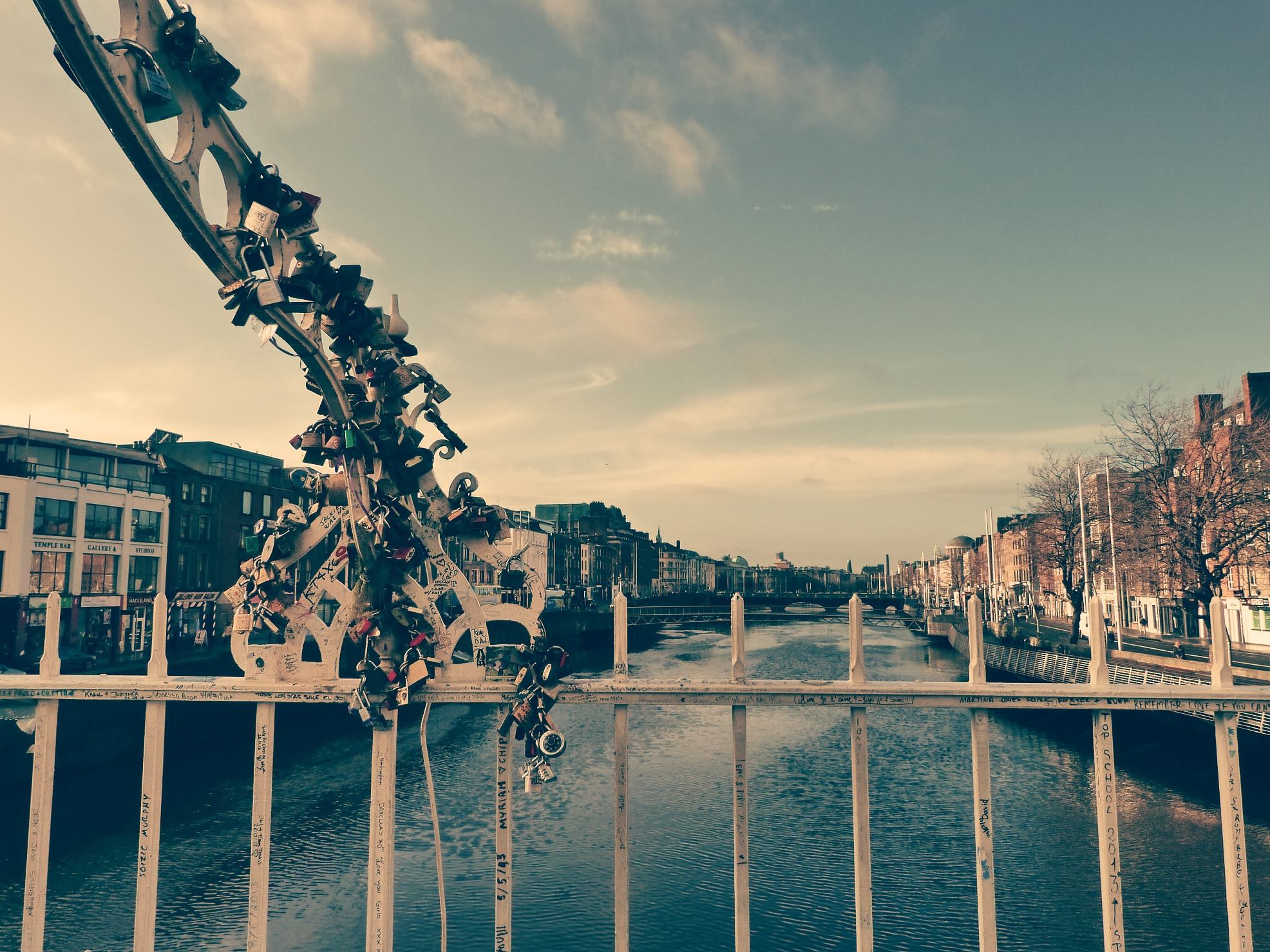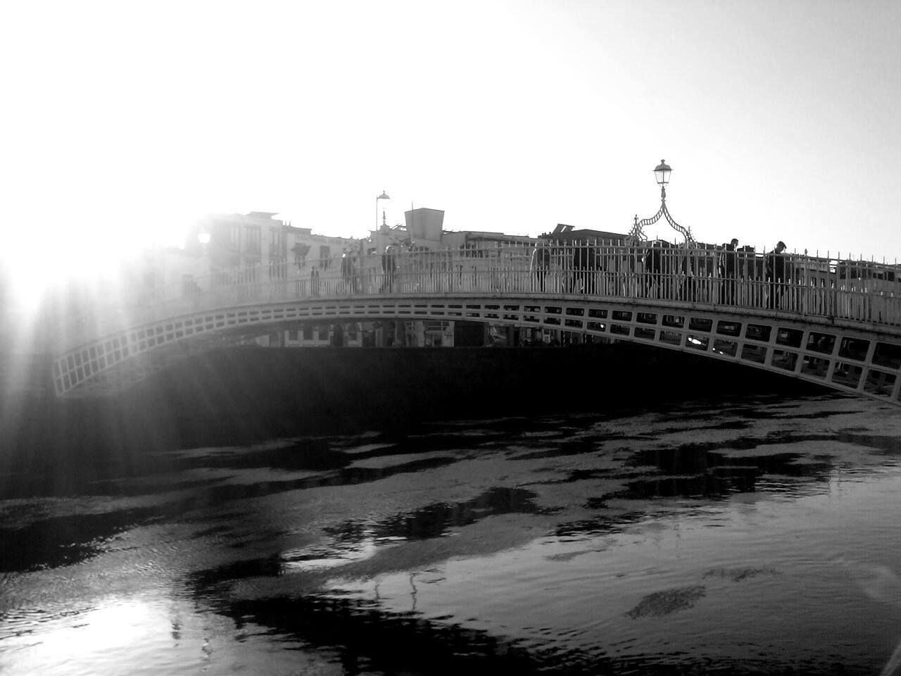 Ha’Penny Bridge – jeden z symboli Dublina. Potoczna nazwa mostu wiąże się z pobieraniem opłaty w wysokości pół pensa za przejście z jednego brzegu na drugi. Dziś łączy dwie najbardziej atrakcyjne części miasta, czyli Temple Bar-miejsce, które przyciąga głodnych rozrywki i spragnionych pysznego Guinnessa z rajem dla zakupoholików, czyli okolice Henry Street wypełnionych sklepami wszelkich możliwych marek.