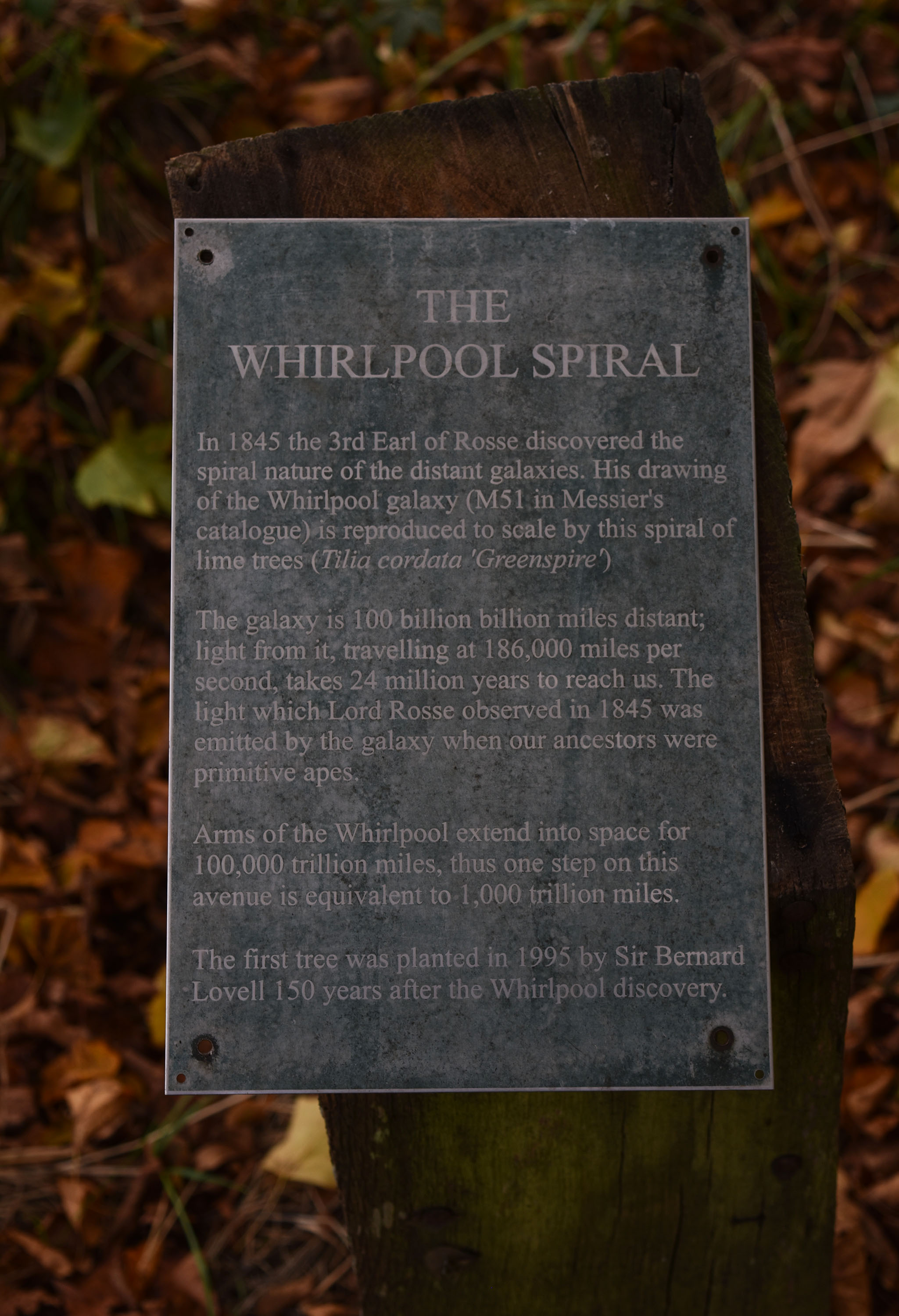 Ta spiralna alejka została stworzona w 1995, 150 lat po odkryciu przez 3 hrabiego Galaktyki Wir, którą to odkrył