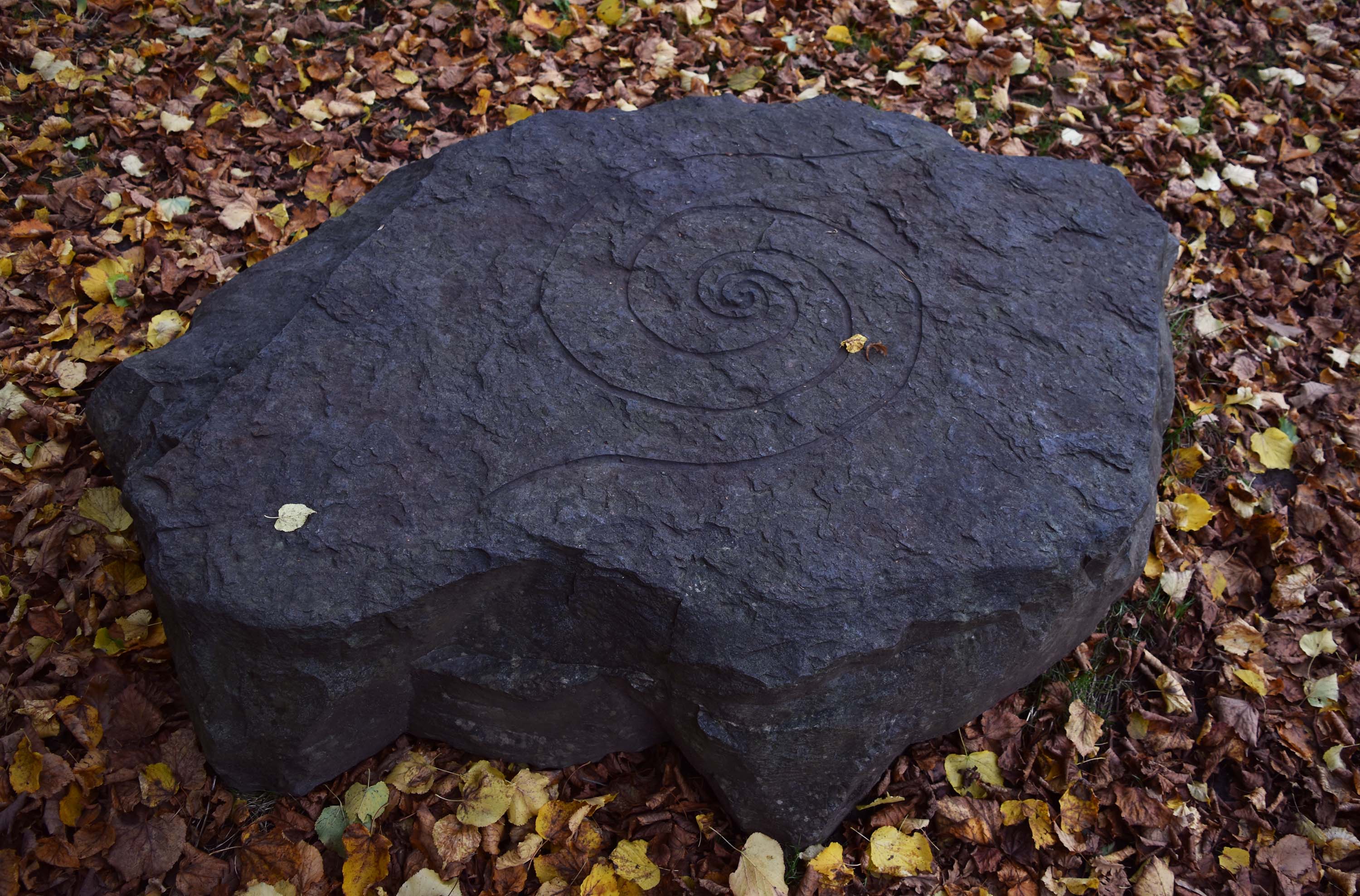 ścieżki o kształcie spirali w której środku znajdował się kamień z wyrytą, niczym starożytną, runą.
